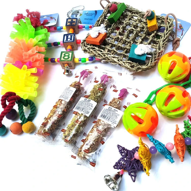 - 1 x Straw Bundle Toy – Designed to simply hang in a cage, this toy has layers of straws and balls for hours of entertainment