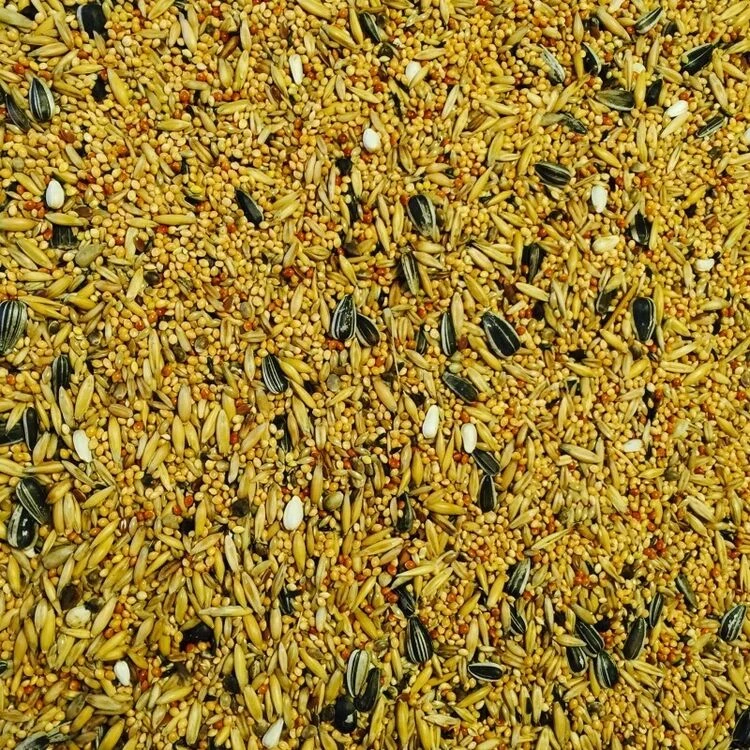 Ingredients: Yellow Millet, Whole Oats, Canary Seed, Naked Oats, Red Millet, Dark Stripe Sunflower Seeds, Buckwheat, Panicum Millet, Safflower Seed, Japanese Millet, Linseed, Hempseed, Nyjer Seed, Oil.