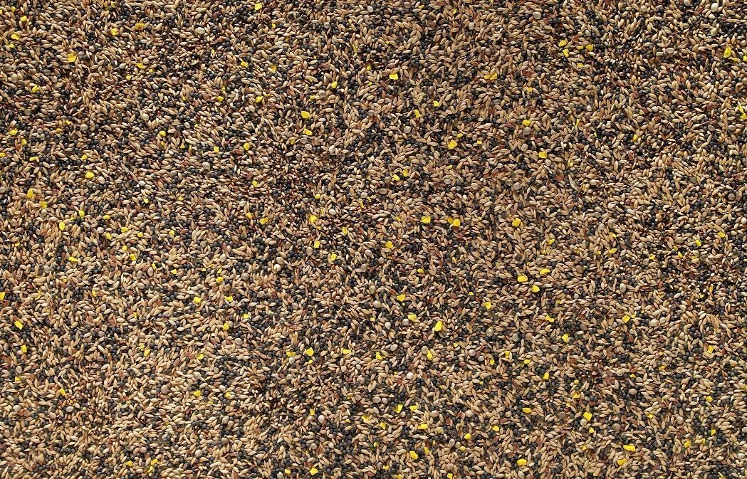 Contains: canary seed, black rapeseed, linseed, niger seed, hempseed, yellow cereal biscuit. Balanced blend of canary seed, black rape [omega 6 and omega 3 fatty acids for cardiovascular and healthy growth], hemp [omega 3], linseed [vitamin E] and niger seeds [amino acids and calcium].