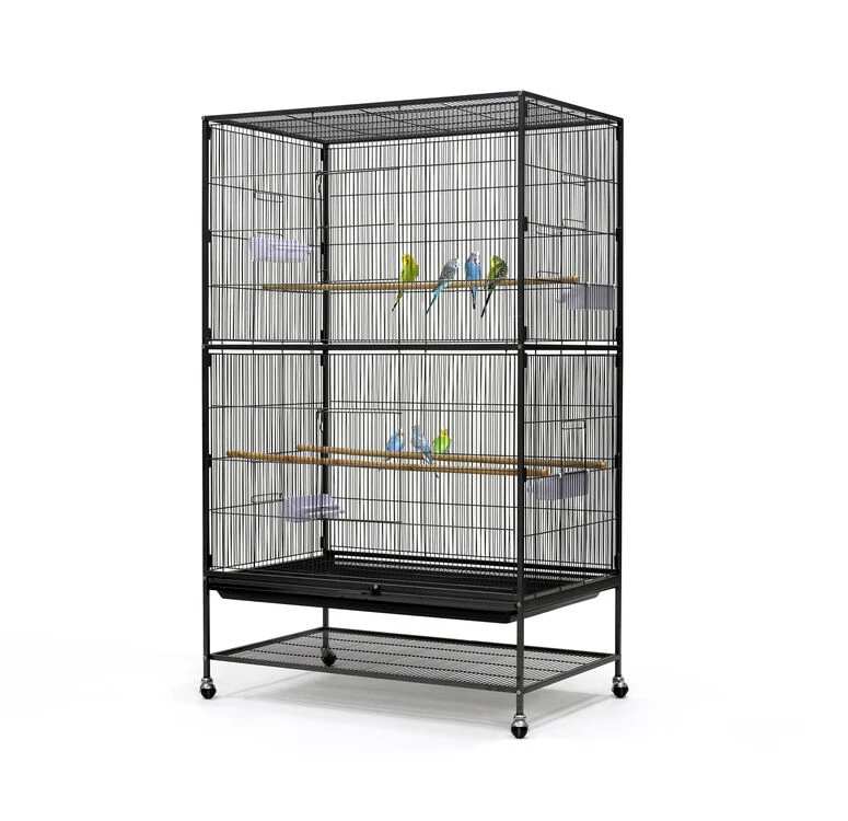 The cage has multiple doors to make access easy, with three perches and 4 bowls for food and water.